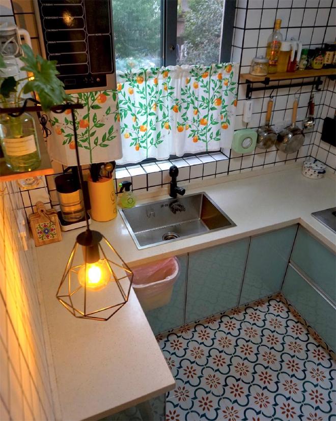 毕竟是一楼,考虑到隐私还是在厨房里装了一道窄帘子,可以一定程度上在不影响采光的前提下避免窗外的视线。