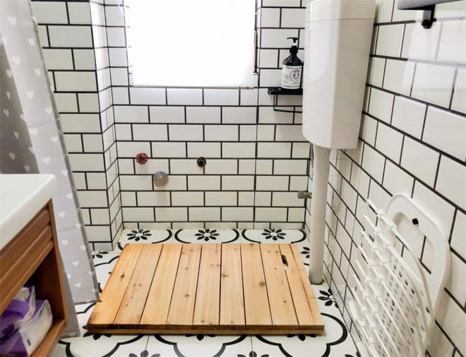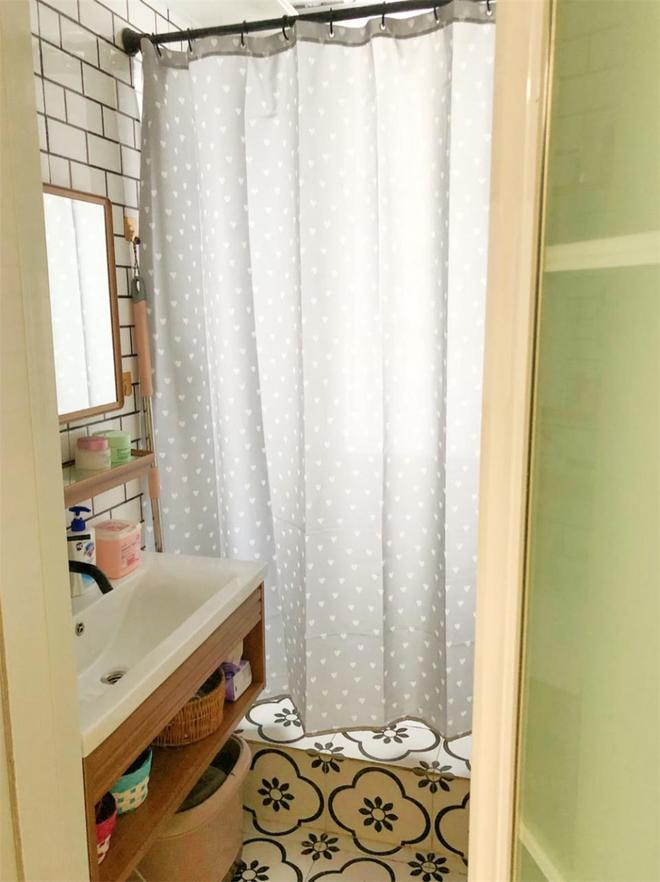 而更有趣的,是这个卫生间居然用了蹲便设计,洗澡的时候盖上盖板拉上浴帘,水可以自然从蹲便器排出,日常盖上板子也不会反味,虽然对于很多人来说不太适应蹲便,但只能说各家有各家的生活习惯吧。
