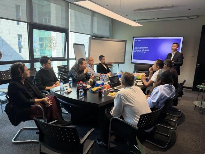 讲解间,嘉宾们围拢而坐,发表自己的想法和观点,激发一波波思维碰撞。这场“锐高照明之旅”并非走马观花,而是技术想法的碰撞与创意的孕育,播撒下照明未来的种子。